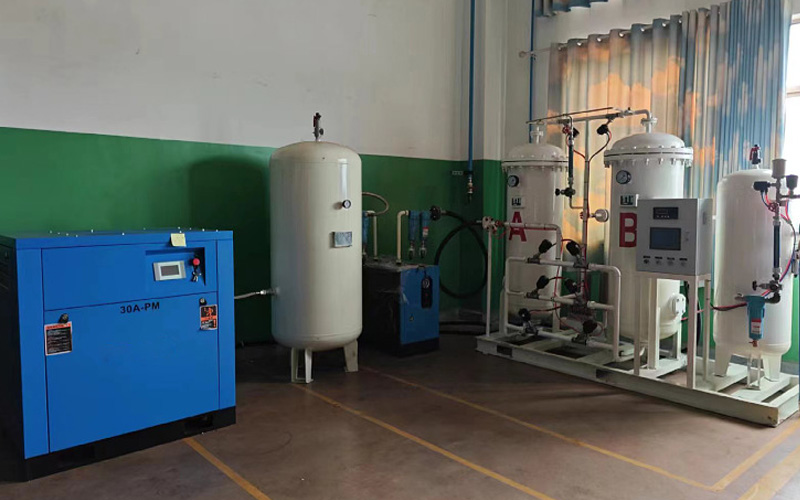 2.處理后的壓縮空氣通過進氣閥進入裝有分子篩的吸附塔。分子篩是一種特殊的材料,可以有選擇地吸收空氣中的氮氣和其他氣體,并允許氧氣通過。這樣,從吸附塔中流出的氣體就是高純度的氧氣。